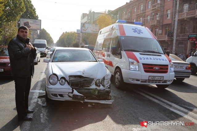 Խոշոր և շղթայական ավտովթար՝ Երևանում. բախվել են Mercedes-ը, Opel-ն ու Audi-A-6-ը. կա վիրավոր