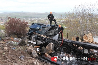 «Կրիստալ» տեսակի օղիով բարձած բեռնատարը Արագածոտնի մարզում շրջվել է ձորը և ամբողջովին այրվել
