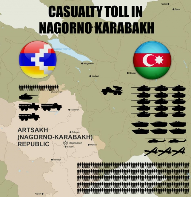 Ծավալված մարտական գործողությունների ընթացքում պաշտպանության բանակի կողմից հյուսիսարևելյան ուղղությամբ ոչնչացվել է ևս 1 տանկ, հյուսիսային ուղղությամբ` ՄՄ-21 (“Գրադ”) տիպի 1 հրթիռահրետանային կայանք, 1 միավոր ինժեներական տեխնիկա և 1 միավոր անօդաչու թռչող սարք՝ Մարտակերտի ուղղությամբ: