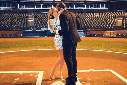 Առաջին նկարում Քիմն ու Քանյեն համբուրվում են Սան Ֆրանցիսկոյի բեյսբոլի ստադիոնում, երբ Քանյեի` ամուսնանալու առաջարկին ի պատասխան Քիմն ասել է` «համաձայն եմ»: Ռեփերը ամուսնության առաջարկը լրացրել է Lorraine Schwartz ոսկերչական ապրանքանիշի 15 կարատանոց ադամանդե մատանիով: