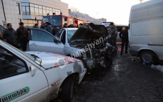 Խոշոր ու շղթայական ավտովթար Երևանում. բախվել են Ford Transit, Mercedes ML, ИЖ, Toyota Camry, Subaru Impreza ավտոմեքենաները. կա 7 վիրավոր. ականատեսները նշում էին, որ վթարի պատճառը եղել է մերկասառույցը…