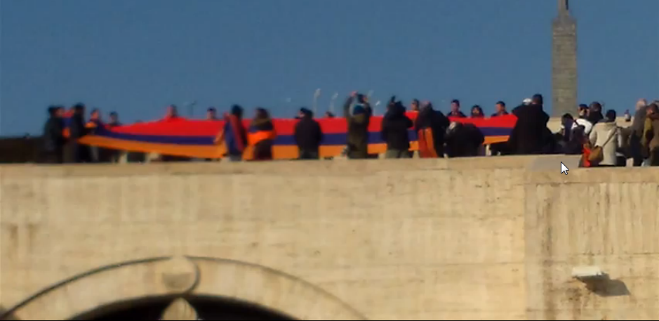 Եռագույնը ու պետական օրհներգը Կասկադում՝ ի նշան բողոքի