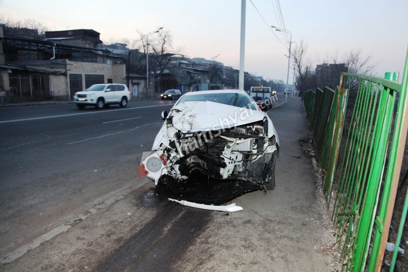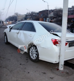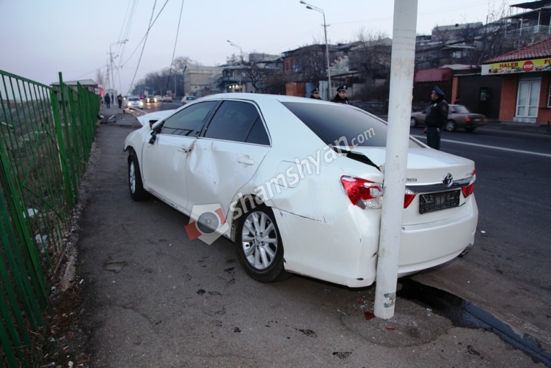 Հերթական «շումախերական» վթարը՝ Երևանում. «գոլդ» համարանիշներով Toyota-ի վարորդը տապալել է էլեկտրասյունը.