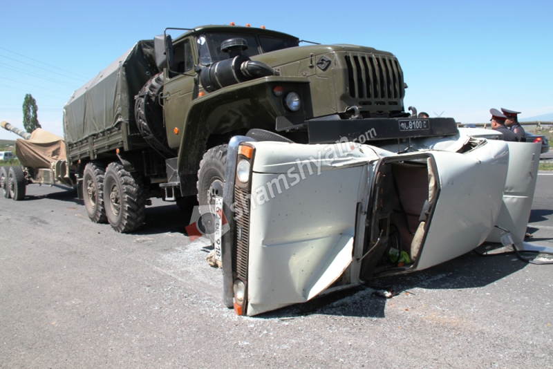 Այսօր՝ մայիսի 3-ին, ավտովթար է տեղի ունեցել Կոտայքի մարզում: Ժամը 11:00-ի սահմաններում Երևան-Սևան ավտոճանապարհի 17-րդ կմ հատվածում բախվել են Շիրակի մարզի Ջրառատ գյուղի բնակիչ, 19-ամյա Հովհաննես Թովմասյանի վարած «Урал» մակնիշի ՊՆ 8100 Շ համարանիշի և Երևան քաղաքի Սարկավագի փողոցի բնակիչ, 86-ամյա Խաչիկ Մկրտչյանի վարած «Москвич» մակնիշի 62 ՍՏ 918 համարանիշի ավտոմեքենաները: Ինչպես վթարի վայրից հայտնում է ֆոտոլրագրող Գագիկ Շամշյանը, վթարի հետևանքով բարեբախտաբար զոհեր և վիրավորներ չկան: Բախման հետևանքով «Москвич»-ը կողաշրջվել է: Վթարի վայր են ժամանել ճանապարհային ոստիկանության 2-րդ սպայական գումարտակի 3-րդ վաշտի աշխատակիցները՝ վաշտի հրամանատարի տեղակալ Երվանդ Ալեքսանյանի գլխավորությամբ: Փաստի առթիվ նույն վաշտի ճանապարհատրանսպորտային պատահարների գործերով տեսուչ Պարգև Ղուկասյանի կողմից նյութեր են նախապատրաստվում: Ֆոտոլրագրողի տեղեկություններով՝ «Урал»-ի վարորդ Հ. Թովմասյանը ժամկետային զինծառայող է, և, ըստ նախնական տեղեկությունների, վթարի մեղավորը եղել է «Москвич»-ի վարորդը, ով չթույլատրելի հատվածից վազանց է կատարել: