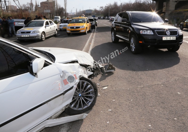 Այսօր՝ մարտի 12-ին, խոշոր ավտովթար է տեղի ունեցել Երևան–Սևան ավտոճանապարհի Առինջի կամրջի մոտ: Ինչպես նշված վայրից հայտնում է ֆոտոլրագրող Գագիկ Շամշյանը, ժամը 15:40-ի սահմաններում նշված հատվածում բախվել են 37-ամյա Սիլվա Աբգարյանի վարած BMW մակնիշի 33 VՏ 034 համարանիշի և 66-ամյա Մարատ Չերքեզյանի վարած Opel Astra մակնիշի 30 ՍN 500 համարանիշի ավտոմեքենաները: Վթարի հետևաքնով Opel-ը գլխիվայր շրջվել է և մինչ շրջվելը՝ հարվածել է Առինջի կամրջի մոտ ծաղիկների առևտրով զբաղվողների տաղավարներին: Բարեբախտաբար, տաղավարների աշխատող մարդիկ չեն տուժել , ինչից հետո Opel-ի վարորդին՝ գլխվայր շրջված ավտոեմեքենայից դուրս են բերել և օպերատիվորեն դեպքի վայր ժամանած շտապօգնության բրիգադը նրան տեղափոխել է Սուրբ Գրիգոր Լուսավորիչ բժշկական կենտրոն: Վթարի վայր են ժամանել Ճանապարհային ոստիկանության 1-ին սպայական գումարտակի աշխատակիցները՝ Հայաստանի քննչական կոմիտեի Երևանի քննչական վարչության ավագ քննիչ Գոռ Թադևոսյանի գլխավորությամբ, ում կողմից փաստի առթիվ նյութեր են նախապատրաստվում: Դեպքի վայրում հավաքվածները ֆոտոլրագրողին ասում էին, որ BMW-ի կին վարորդի համար ժամանած մի քանի երիտասարդներ ասում էին, որ նա աշխատում է ՀՀ ՊՆ համակարգում: Օպերատիվորեն ժամանել են նաև ապահովագրական ընկերությունների ներկայացուցիչները, ովքեր խոստացել են, թե ծաղկավաճառների վնասը փոխհատուցելու են, չնայած ծաղկավաճառները թերահավատ են, որ ԱՊՊԱ-ն կփոխհատուցի: