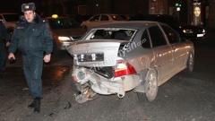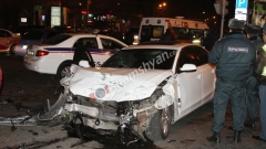 Այսօր՝ փետրվարի 25-ին, խոշոր ու շղթայական ավտովթար է տեղի ունեցել Երևանում: Ժամը 21:20-ի սահմաններում Կորյուն և Տերյան փողոցների խաչմերուկում՝ «ՑԻՏԱԴԵԼ» բիզնես-կենտրոնի դիմաց, բախվել են Audi A4 մակնիշի 34 CZ 679 համարանիշի, Opel մակնիշի 87 ZZ 222 համարանիշի, Lexus մակնիշի 58 CC 088 համարանիշի և Nissan մակնիշի L 2042 համարանիշի ավտոմեքենաները: Ինչպես վթարի վայրից հայտնում է ֆոտոլրագրող Գագիկ Շամշյանը, վթարի հետևանքով Audi-ի վարորդը մարմնական վնասվածքներով տեղափոխվել է հիվանդանոց: Վթարի վայր են ժամանել Ոստիկանության Երևան քաղաքի վարչության պարեկապահակային գնդի 1-ին գումարտակի ծառայողները և Ճանապարհային ոստիկանության 1-ին սպայական գումարտակի աշխատակիցները: Ժամանել էին նաև ապահովագրական ընկերությունների ներկայացուցիչները: Վթարի մասին տեղեկությունը ՃՈ օպերատիվ կառավարման կենտրոնից փոխանցվել է Հայաստանի քննչական կոմիտեի Երևանի քննչական վարչություն: Վթարի վայրում քննչական աշխատանքները ղեկավարում է քննիչ Գեղամ Գալստյանը, ում կողմից փաստի առթիվ նյութեր են նախապատրաստվում: Վթարի վայրում հավաքվածները ֆոտոլրագրողին ասում էին, որ 4 հոգի մարմնական վնասվածքներով տեղափոխվել են հիվանդանոց: Ոստիկանությունն ու քննչական բաժինը պարզում են վարորդների և վիրավորների ինքնությունը: